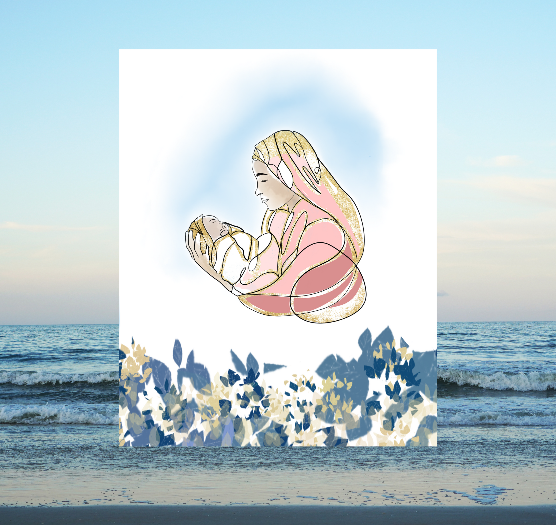 With gentle lines and a calming palette, this artwork is a quiet celebration of motherhood, faith, and the miracle of Christ’s birth—perfect for nurseries, sacred spaces, or any room that welcomes grace.