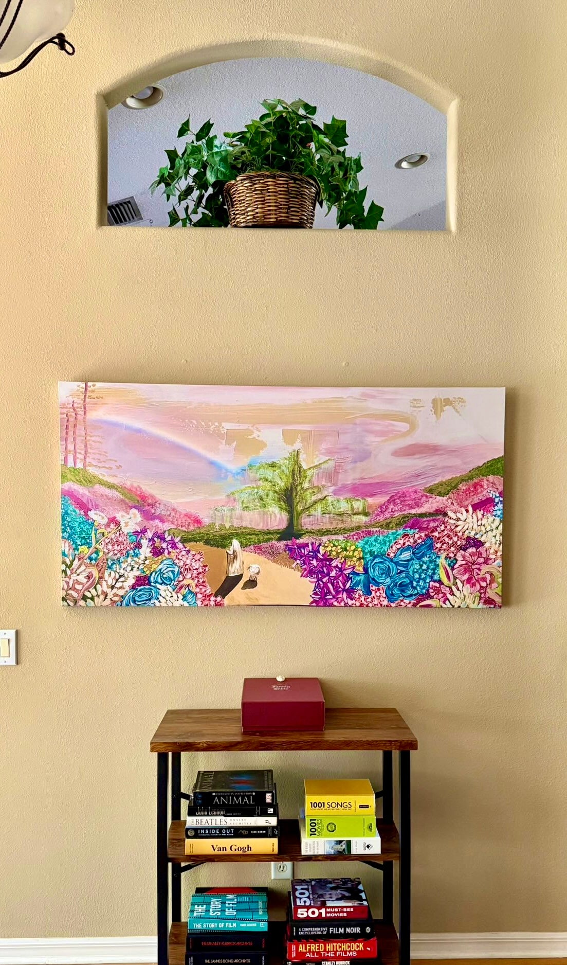 The rainbow fits perfectly behind the Tree of Life, as if placed there with purpose. It's a stunning and unexpected symbol—a reminder that God often enhances our work in ways we never imagined. This is why the original painting does not contain the rainbow, though it now graces every print as a quiet miracle.