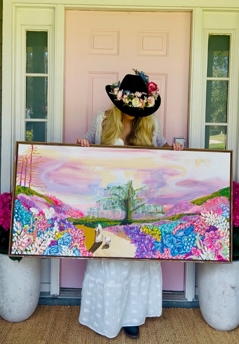 This painting was created with Heaven as its guiding vision—a vibrant and hopeful portrayal of the eternal joy that awaits. At its heart stands the Tree of Life, inspired by the majestic Fairchild Oak, a 2,000-year-old tree Britney encountered near Ormond Beach, Florida. Its age and beauty offered a powerful symbol of enduring life.